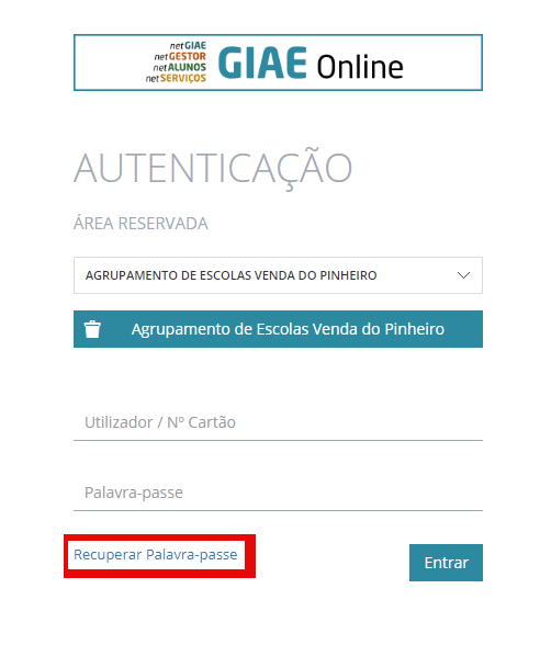 No GIAE Online, clique na ligação Recuperar Palavra-passe (ao lado do botão Entrar).