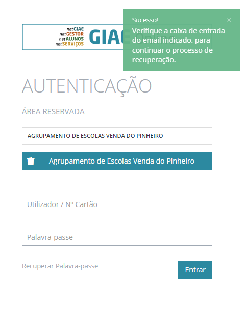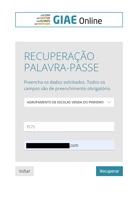 Nota: este endereço de email deve corresponder ao registado como do Encarregado de Educação no processo do aluno; não utilize o email institucional do aluno.
